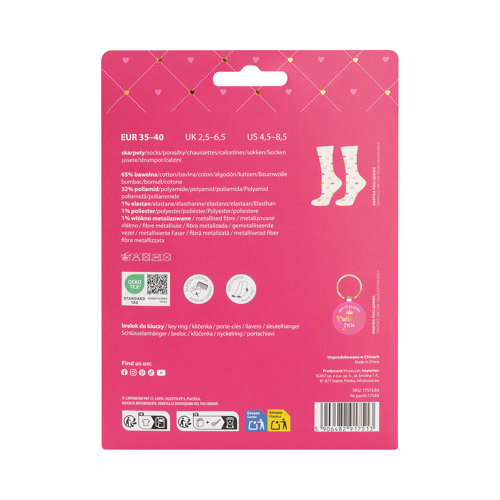 • Zestaw prezentowy – brelok i skarpetki w tym samym stylu sprawiają, że upominek jest kompletny i gotowy do wręczenia.