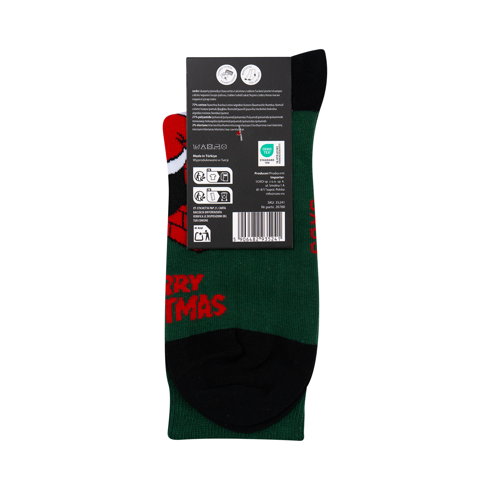 - Ciemnozielone skarpetki z motywem Niegrzecznego Mikołaja z butelką – idealne dla tych, którzy wolą święta z humorem i odrobiną luzu. Świąteczny klasyk w niegrzecznym wydaniu.