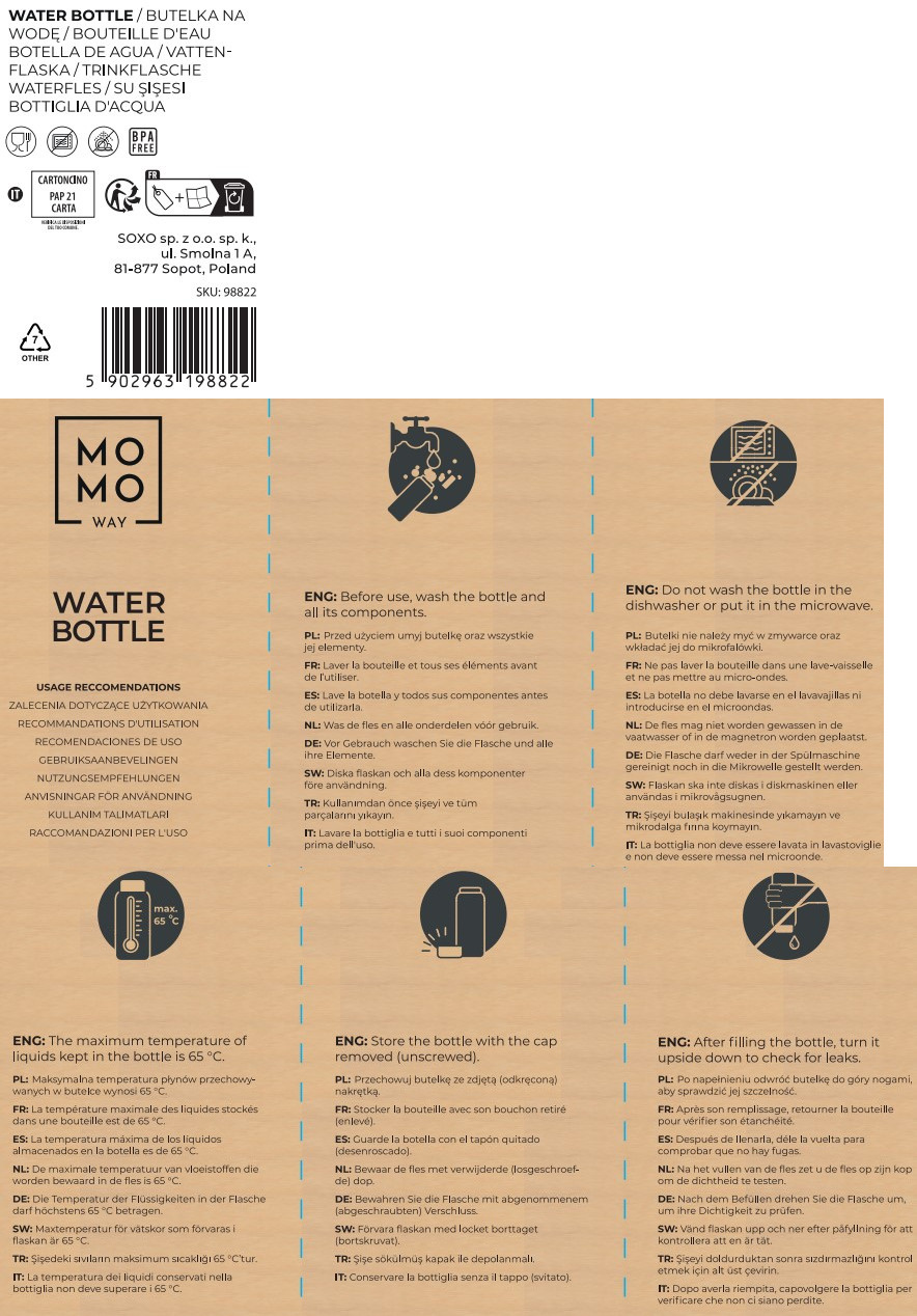 - Butelki MOMO WAY z tritanu, ze względu na ich wyjątkowe właściwości i wytrzymałość na uszkodzenia, idealnie nadają się na szkolne wycieczki, treningi i długie podróże.